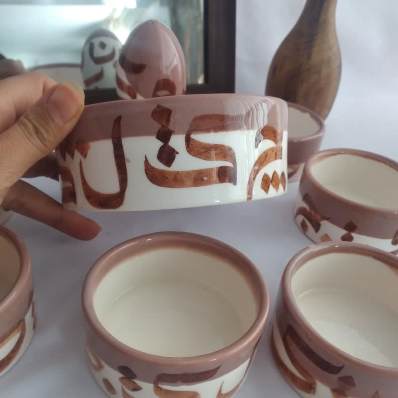 ست هفت سین کالیگرافی شامل یک عدد ظرف سبزه با دهانه 12 سانت و 6عدد پیاله با دهانه8 سانت یک عدد تخم مرغ و یک عدد آینه 19*25 تماما کار دست و مستقیم از تولیدی با تخفیف 10 درصد تقدیمتون میشه .
