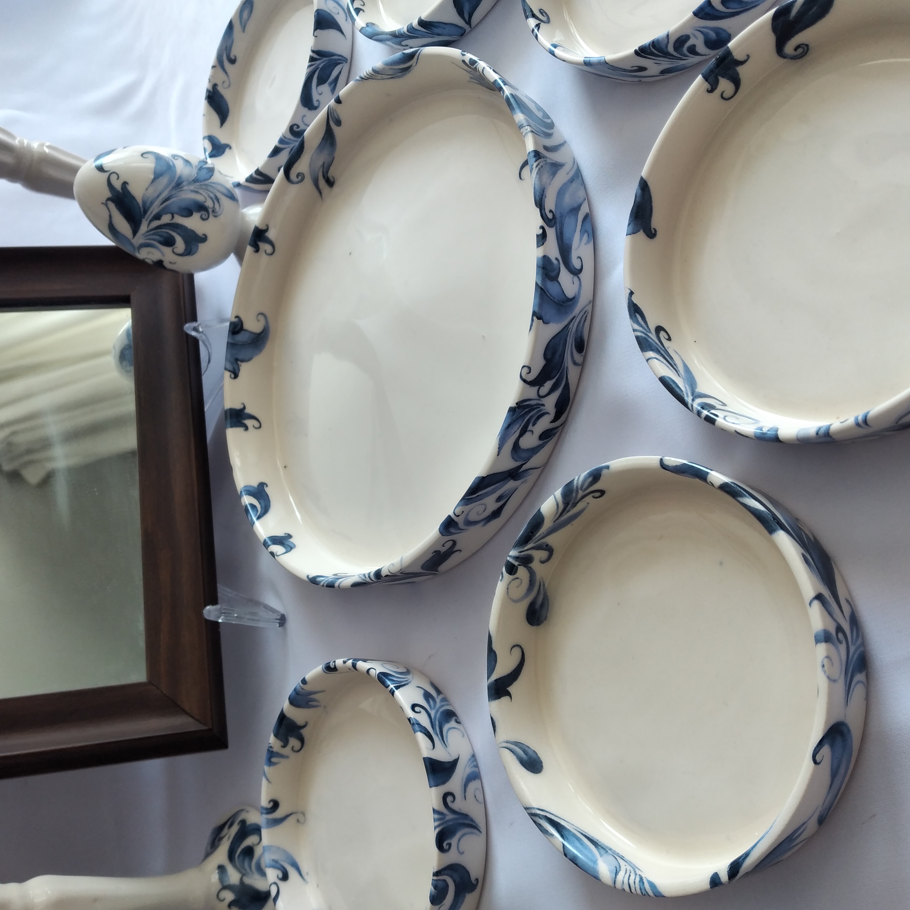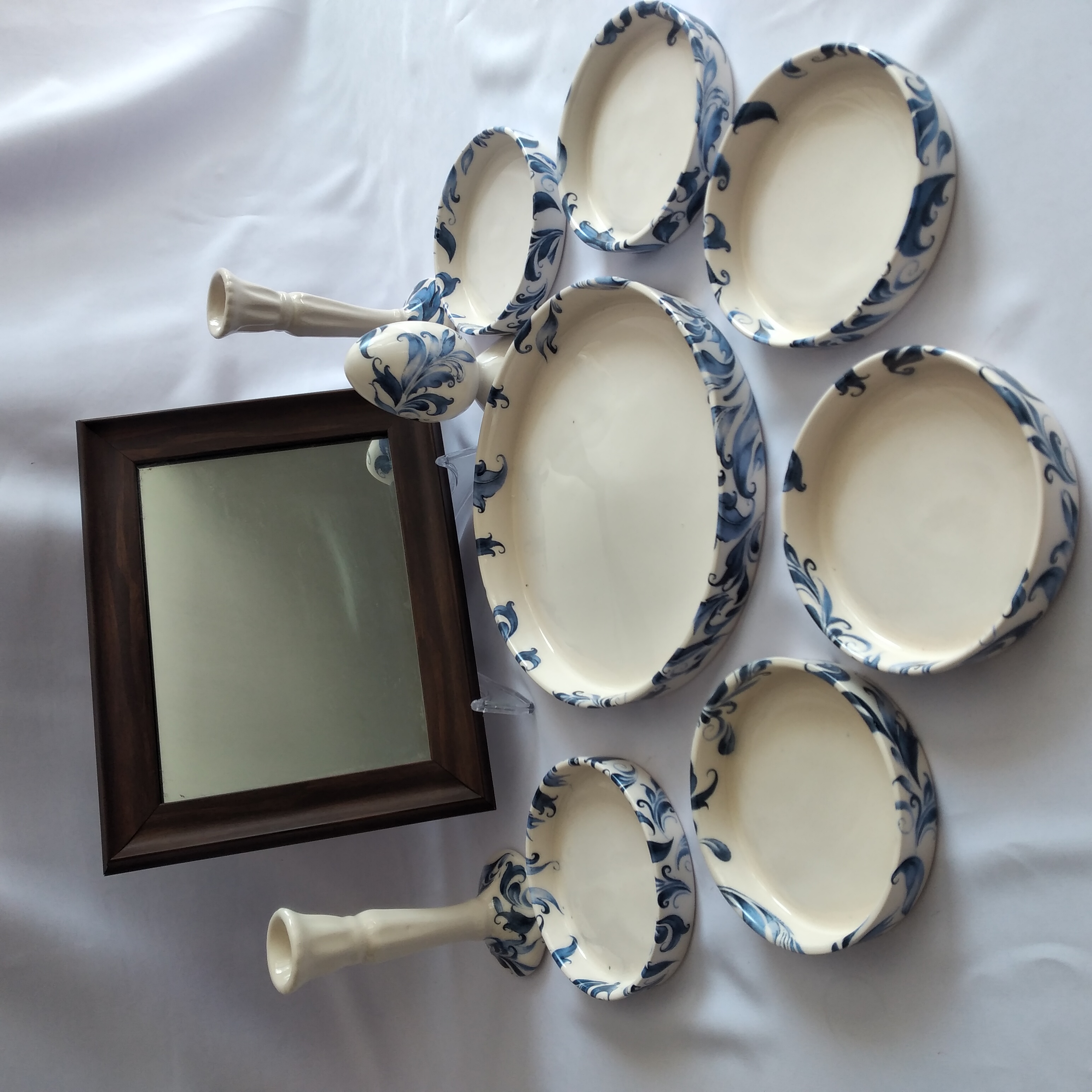 ست هفت سین قلم آبی شامل یک عدد ظرف سبزه با دهانه 16 سانت و3عدد بشقاب با دهانه 10 سانت یک عدد تخم مرغ و یک عدد آینه 19*25 تماما کار دست و مستقیم از تولیدی با تخفیف 10 درصد تقدیمتون میشه .