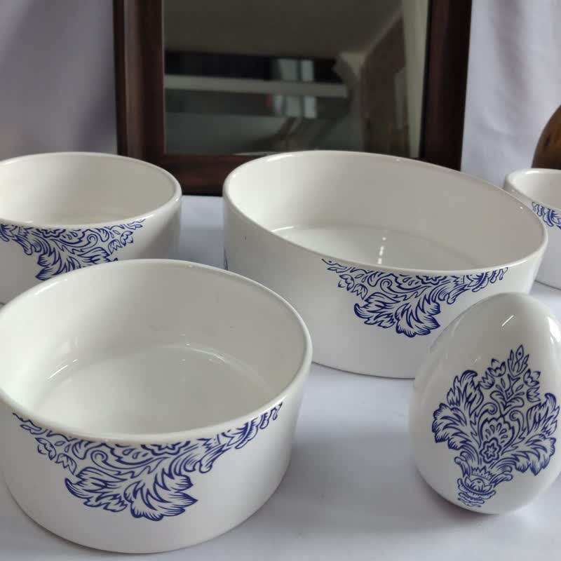ست زیبای قلم آبی که به عنوان هفت سین طراحی و اجرا شده شامل4عدد کاسه با دهانه10سانت یک عددکاسه با دهانه15 سانت و یک عدد تخم مرغ و آینه است .این ست بعد از استفاده به عنوان هفت سین به دلیل مصرفی بودن و قابل شست و شو بودن ظروف میتوانید در آشپزخانه به عنوان سرو مواد غذایی مورد استفاده قرار دهید .